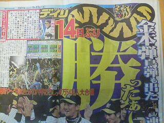 GW突入前以来14日ぶり白星に、デイリーの「トラしっぽ」も超特大バージョンでお祝いです…祝